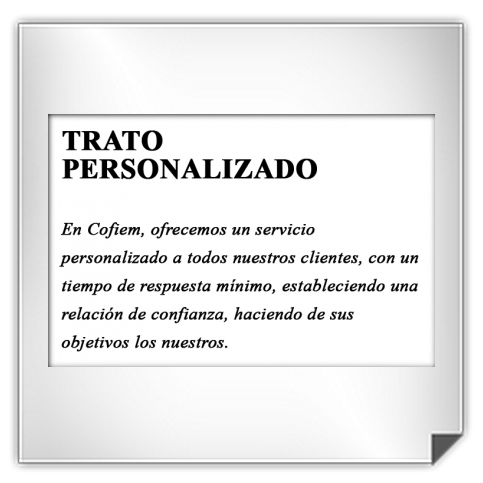 Desde Cofiem, ofrecemos a nuestros clientes un trato personal y cercano, dedicándoles la máxima atención para cumplir nuestra prioridad: su satisfacción. Nos preocupamos por sus intereses, aproximándonos a sus realidades empresariales y adelantándonos a sus necesidades.